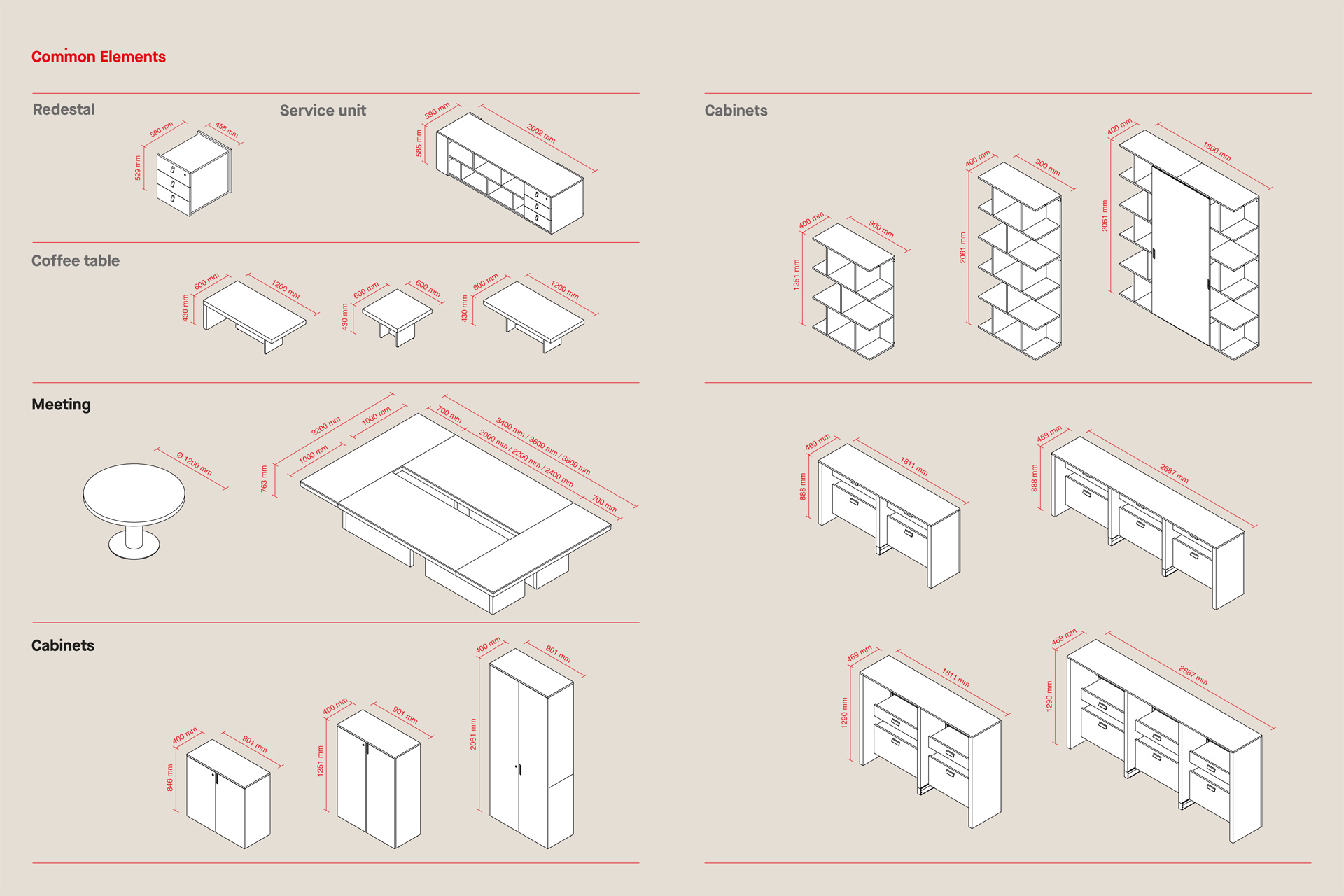 Meetingtische und schicke Sideboards, auf Wunsch mit optionaler LED-Beleuchtung, runden das Programm ab.