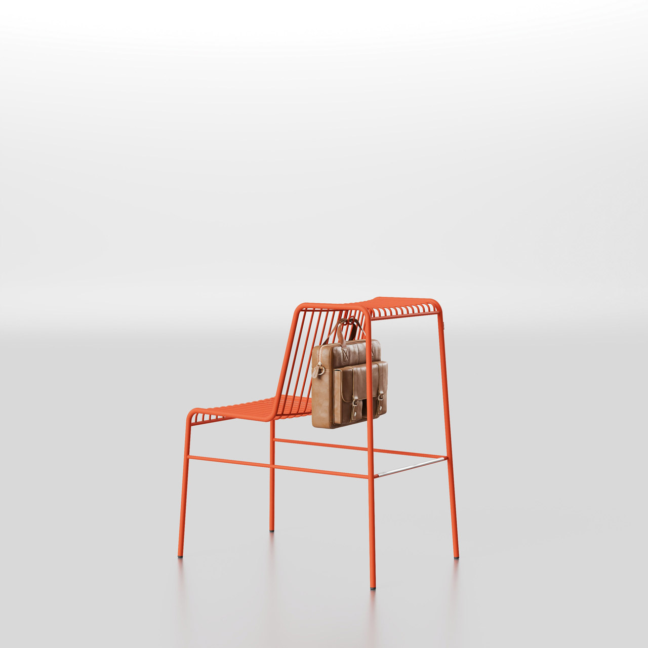Der Sello 4 Bein Stuhl und Hocker wurde speziell entwickelt, um den Anforderungen dynamischer Umgebungen gerecht zu werden. Ein integrierter Haken ermöglicht das einfache Aufhängen von Taschen und Rucksäcken, was zusätzlichen Komfort und Ordnung bietet.